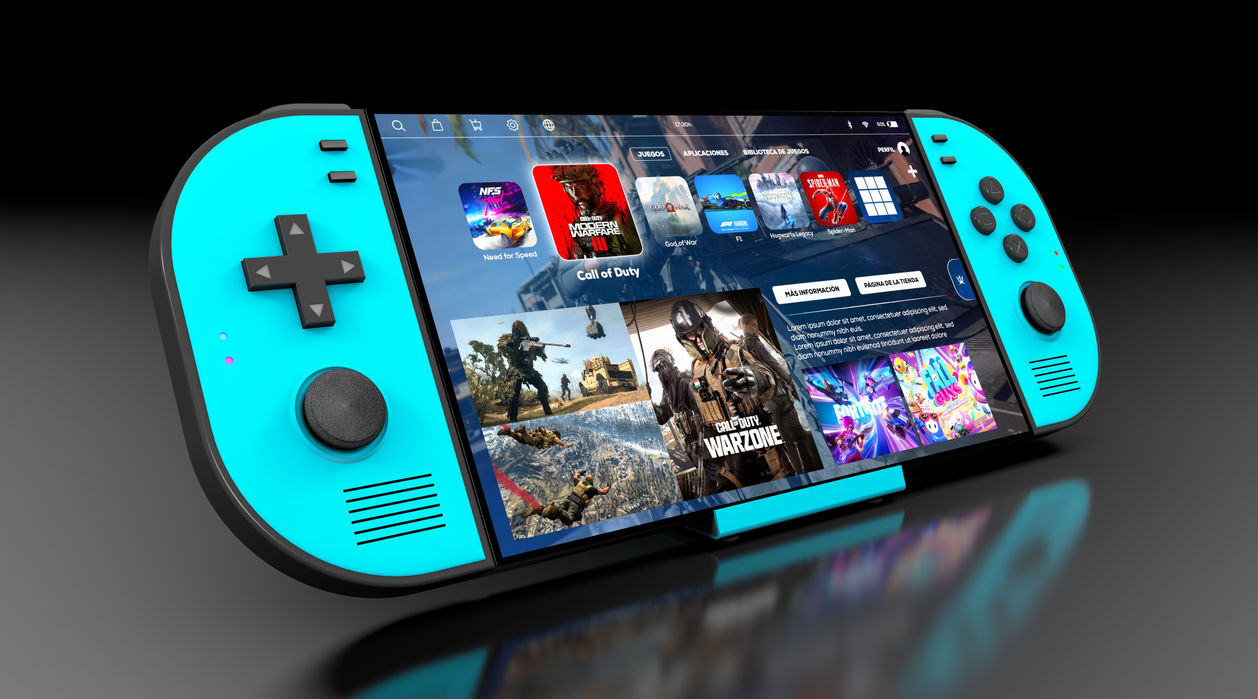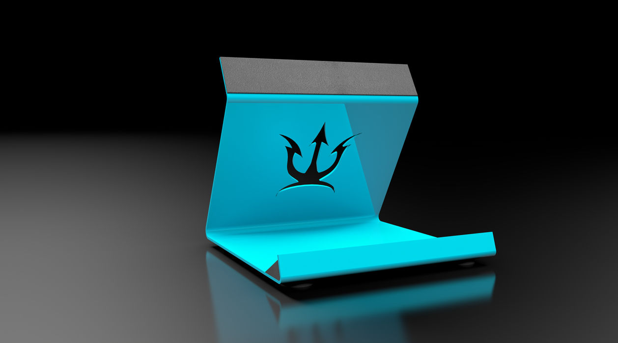 Diseño de soporte para la consola, en material metálico con protectores antirrayaduras